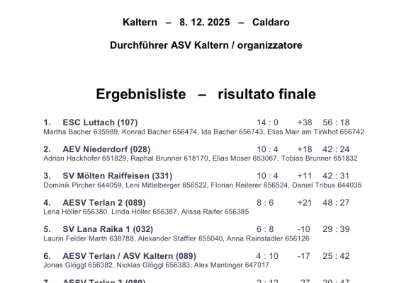 Bei der Landesmeisterschaft im Dezember in Kaltern erreichten wir den 3. Platz 🥉, und heute bei der Italienmeisterschaft in Brixen konnten wir uns über einen tollen 2. Platz freuen. 🥈