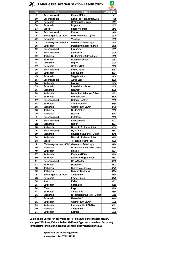 Der SV Mölten Raiffeisen Sektion Stocksport lädt alle Firmen, Vereine, Freunde und Interessierte am 06.06.2025 mit Spielbeginn 20.00 Uhr zur Dorfmeisterschaft im Stockschießen ein.